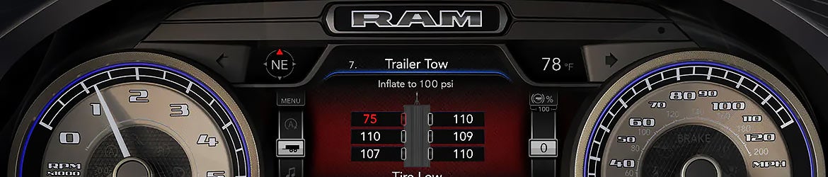 There's seating for up to five passengers inside the 2021 Ram 1500. A 12-inch touch-screen display is standard equipment in all trim levels. For more features, upgrade to the Uconnect 12.0 system, which includes navigation, split-screen capability, and pinch-and-zoom technology. Apple CarPlay and Android Auto integration allow you to access your favorite apps, such as music, calls, and more.