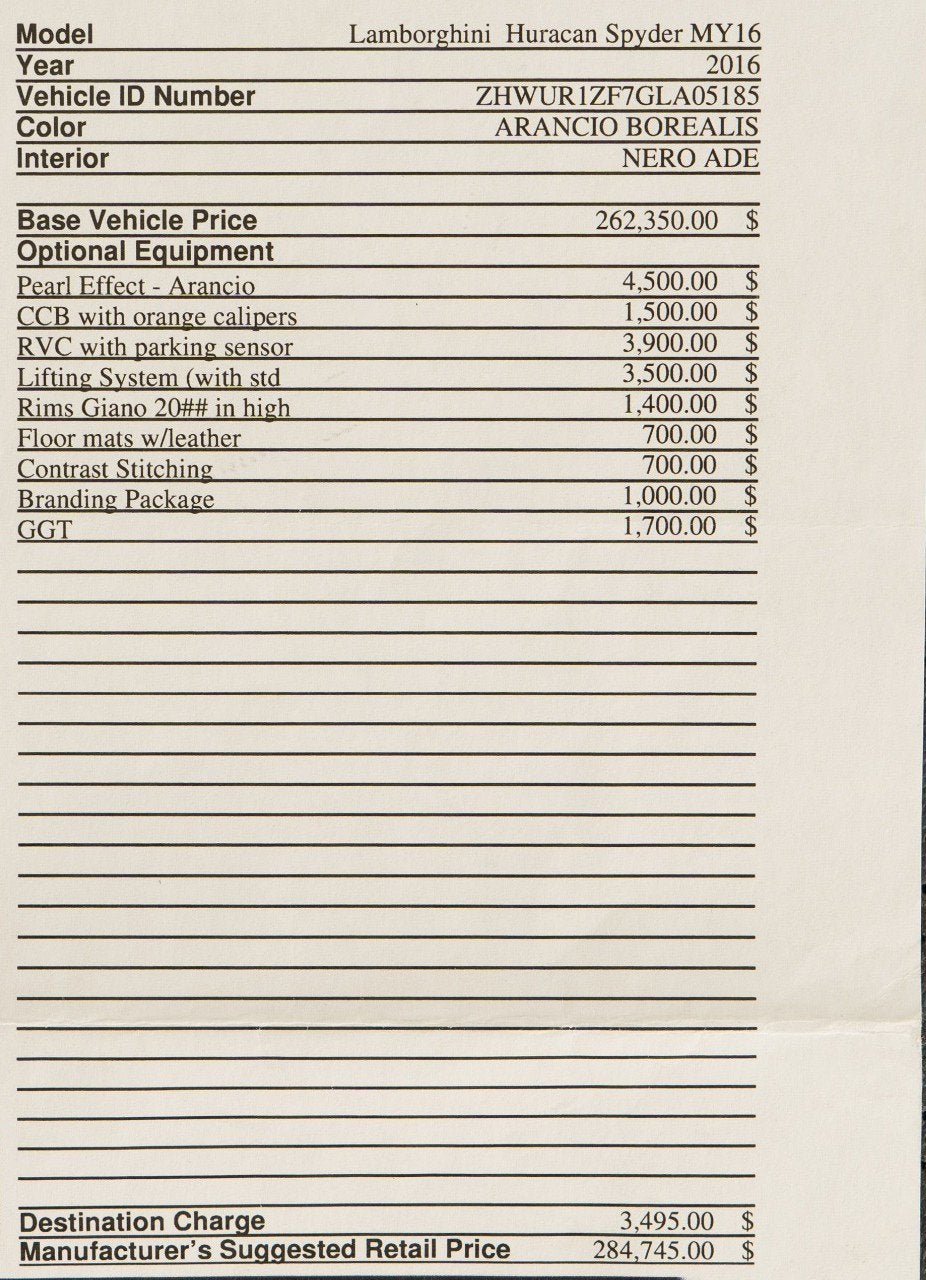 2016 Lamborghini Huracan LP610-4 Spyder
