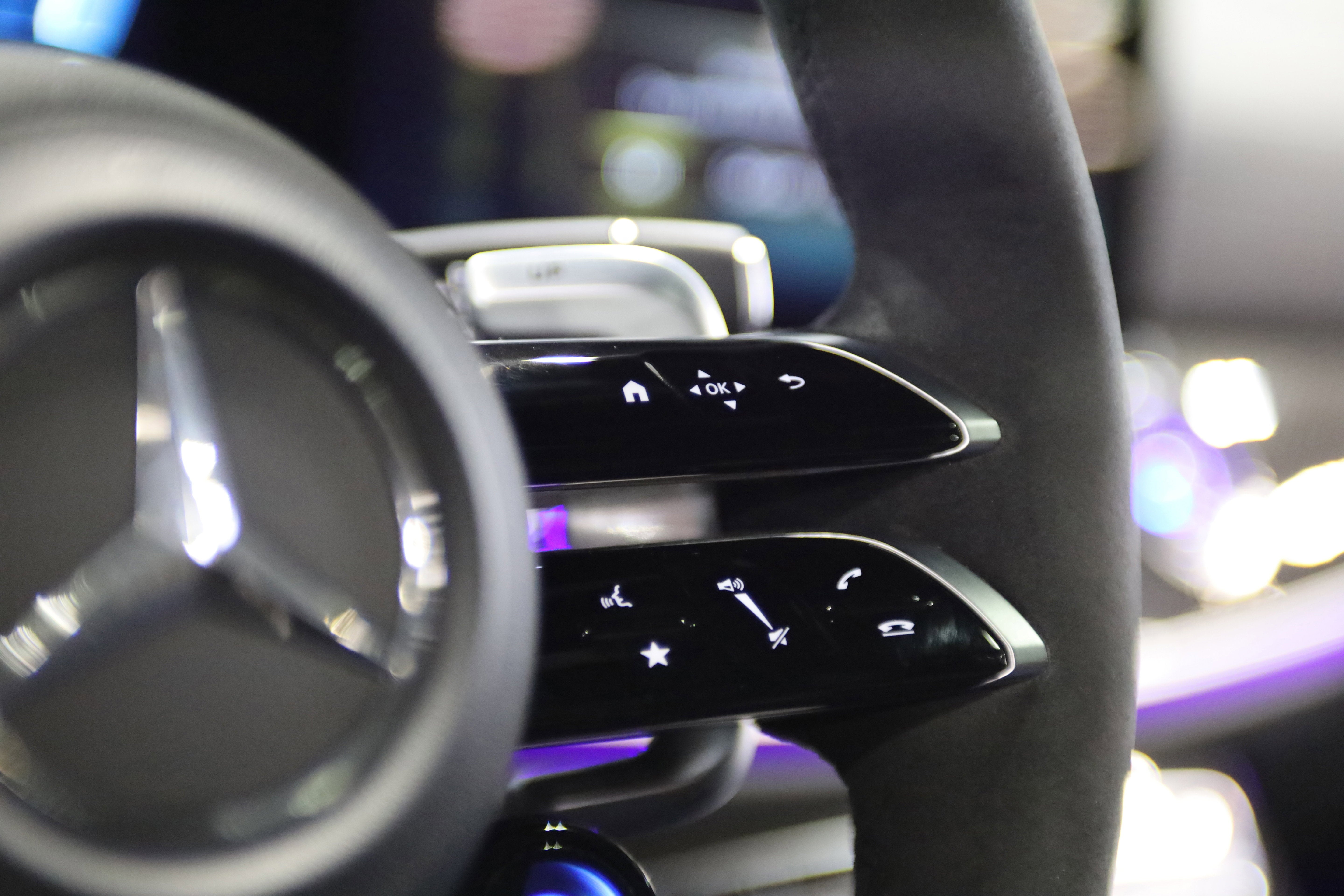 Interior comforts include dual-zone climate control, wireless charging, Burmester-grade audio with 13 speakers, multiple digital displays, illuminated interior accents, and advanced seating adjustability. Safety features include Active Brake Assist, Parking Assist with PARKTRONIC, Aerial View Camera System, driver monitoring, front + side + curtain airbags, and a full suite of collision-avoidance technology.